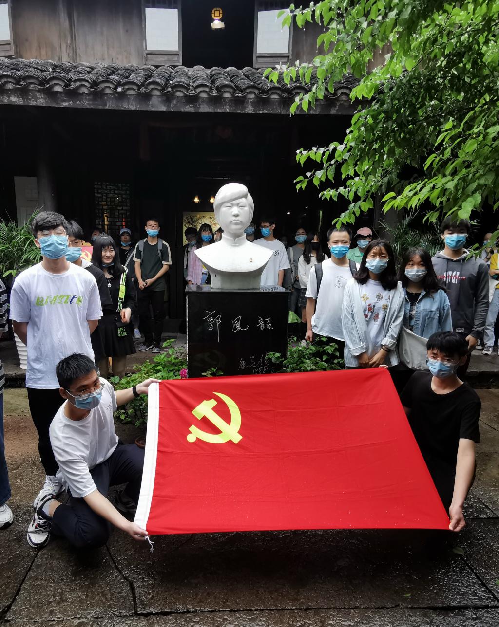 革命先烈郭凤韶的故居坐落在古街之中,故居院内郭凤韶烈士的塑像正气凛然。为落实疫情防控相关要求,学员佩戴口罩,测温并展示健康码,分批分流进入故居。在故居中,讲解员向学员们详细地讲述了郭凤韶烈士的一生,郭凤韶烈士视革命为第一生命,早已将自己的生死置之度外。她的奋不顾身、大义凛然和英勇无畏,犹如她所画的《且向百花头上开》红梅图,冷艳且香,傲气坚强。活动中,支部党员代表带领学员面向党旗庄重宣誓,在烈士故居带领学员感受申请入党时的思想激情和奋斗追求,不忘初心,牢记使命。