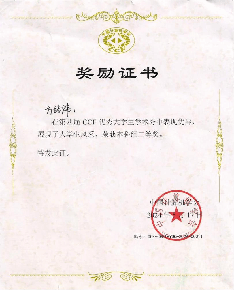 突破!电信学子斩获中国计算机学会(CCF)优秀老员工学术秀二等奖