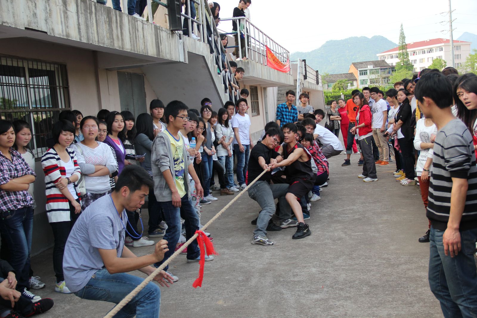 比赛还没开始,各班级的运动员已经排好了队伍聚集在操场上,他们心中充满期待。此次的运动会共有4项比赛:跳绳,背球接力,拔河,单腿火车跑。最激动人心的莫过于拔河了,赛场上人声鼎沸。参赛者全力拼搏,拉拉队声嘶力竭,旁观者欢呼喝彩。10信管永不言弃,戏剧性地扭转局势,将全场比赛推向了小高潮。11数学更是抢占焦点,面对“连续性”比赛的劣势,全班级上下一心,转劣为优,凭借恢弘的气势,一鼓作气,连胜夺冠。青春的气息在每项比赛中都表现的淋漓尽致,每位运动员都本着为班争光,赛出自己独特的风格和成绩。