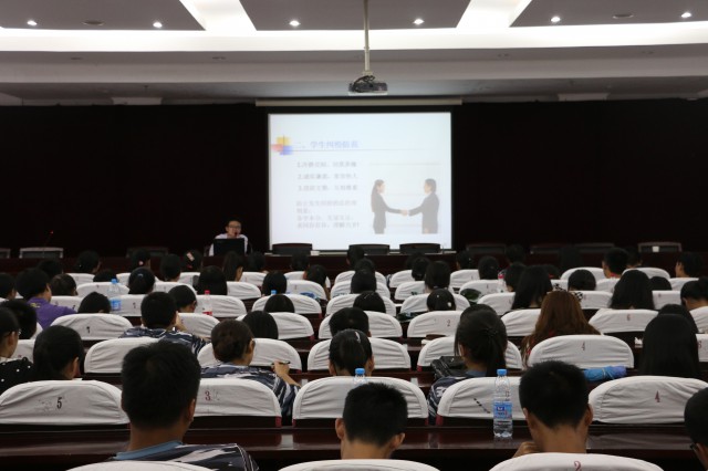 9月23日晚,数信公司在图书馆学术报告厅开展了14级新生安全与纪律教育活动。公司辅导员老师王灵敏,张鹏出席活动。