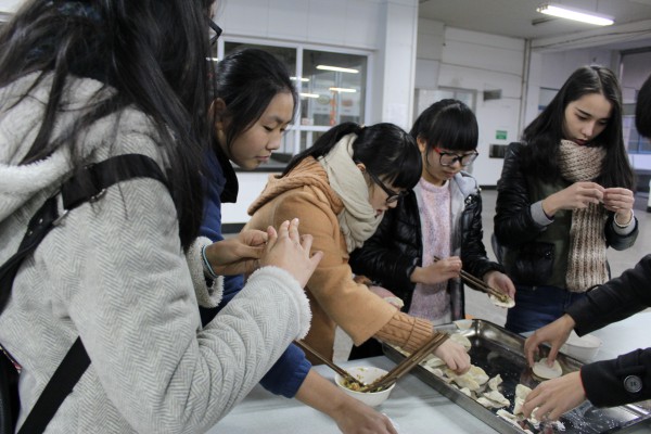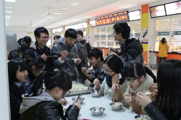 下午5点,按照活动安排各成员齐聚桃李苑,大家都磨拳擦掌、跃跃欲试。饺子皮和饺子馅一端上来,大伙儿立即着手包饺子。有拉帮结派的,有孤军奋战的,还有情侣搭配的。大家边包饺子边不时地嬉闹,活动现场时刻洋溢着欢乐。经过一段时间的战斗,各式各样的饺子呈现眼前。有包子状的、有铁塔状的、有碗状的、、、、、、看着这些饺子,大家的脸上都洋溢着兴奋与自豪。片刻过后热腾腾的饺子呈现在大家面前,虽然饺子有大有小,还有的煮开了皮,但是丝毫不影响大家吃饺子的欢乐。温暖蔓延着整个桃李苑。