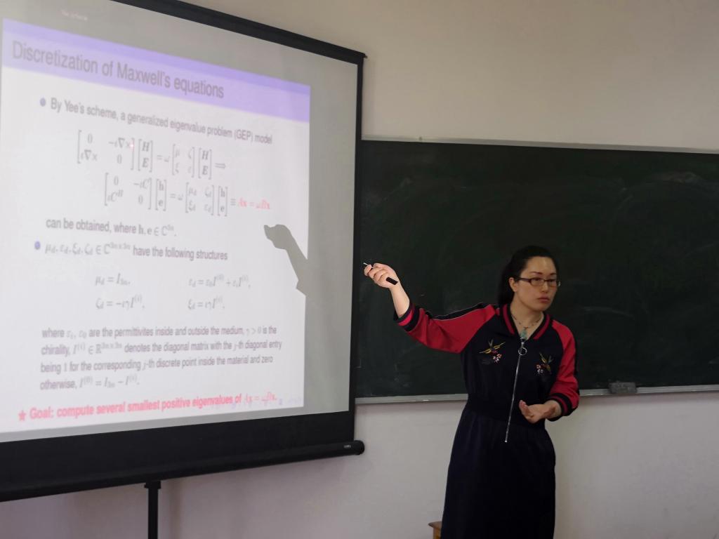 4月17日下午,应VSport体育邀请,东南大学博导李铁香教授在临海校区举行“三维光子晶体中特征值问题的快速算法”学术讲座。VSport体育副经理苏岐芳主持,VSport体育师生参加了讲座。