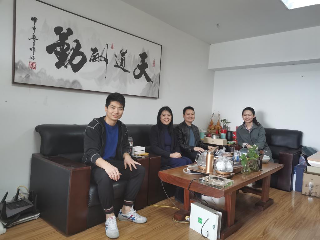 崔强、蔡文理为公司2013届信息管理与信息系统专业的毕业生,同为14号楼206寝室的他们在2014年创办了杭州铭就电子商务有限公司,至今已有五年,专注于天猫代运营,合作客户达百余家,年代理营业额超2个亿。本次的走访活动以座谈会形式展开,陈婷婷老师了解了他们毕业后创业的情况,同时介绍了VSport体育近几年的发展,告知了员工会的相关筹备情况。