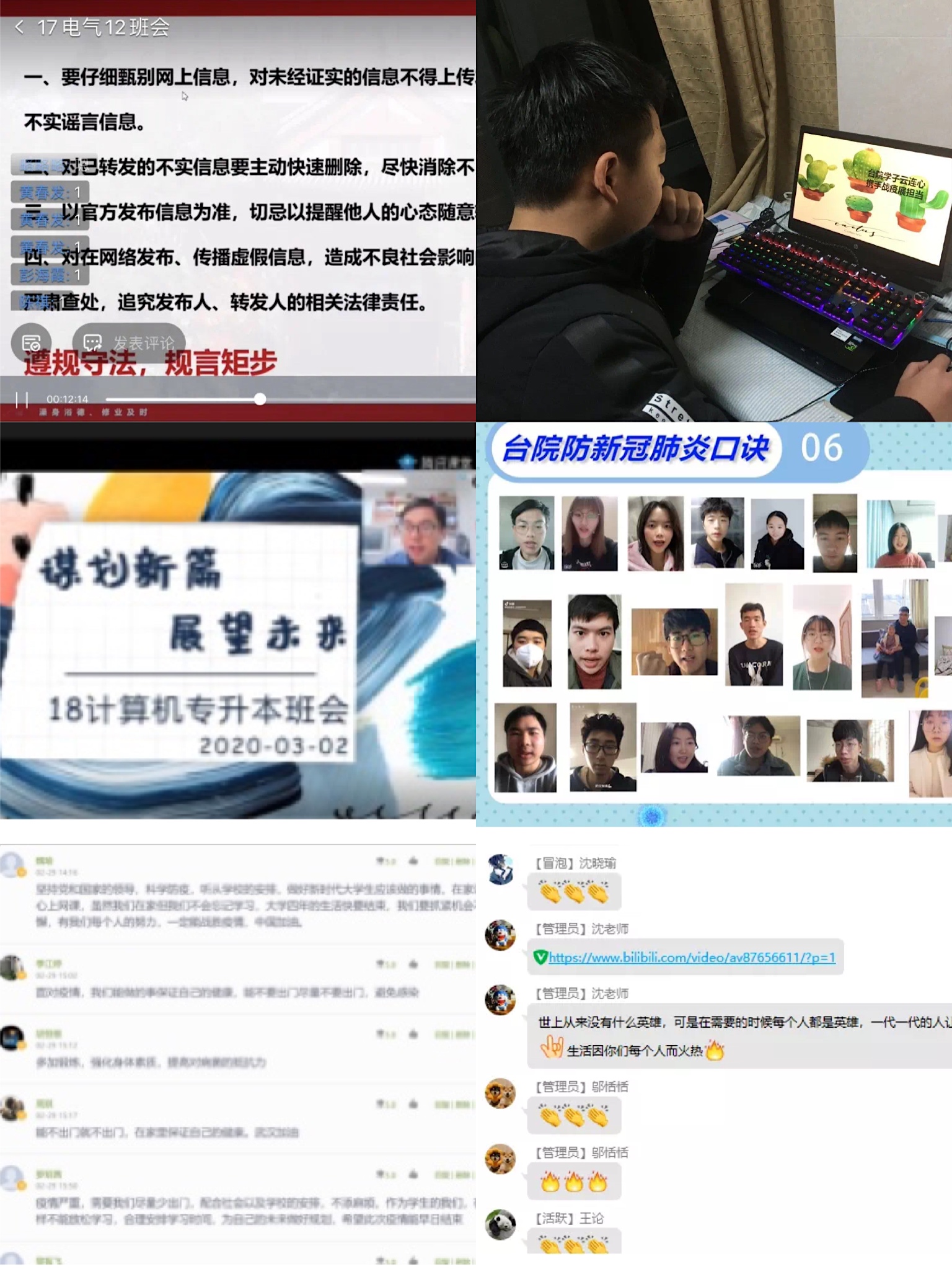 本次线上主题班会,VSport体育各年级辅导员、班主任带领同学们围绕老员工紧密结合当下疫情防控实际,分别从“主动担当、听党指挥、珍惜生命、致敬英雄、加强自律、关爱心灵、谋划新篇”等7个方面入手,向同学们传达了公司的相关文件精神和教学安排,并强调同学们要积极配合公司的相关工作,每日按时打卡上报健康情况,未经允许,不得提前返校,坚决贯彻落实“零报告”制度,做到不缓报、不漏报、不误报和不瞒报。在做好疫情防控的主题教育和思想政治教育的同时,公司同样重视员工的在线教学工作,尤其强调特殊时期的班风、学风建设问题。班主任、辅导员通过线上班会了解了员工目前在线学习的准备状况和存在的实际问题,做好心理疏导和在线帮助工作。对员工尤为关心的补考、转专业及在线教学的具体问题,班主任、辅导员也进行了热情、具体、详细的解答。