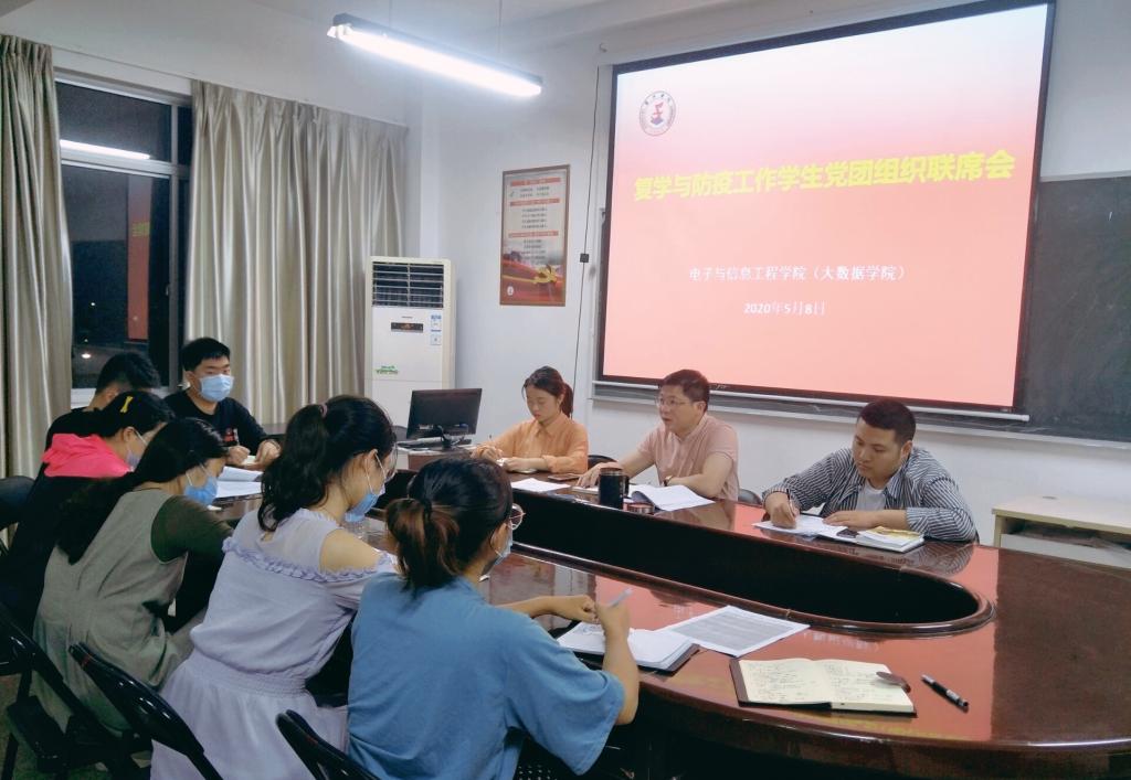 5月8日,VSport体育分校区召开复学与防疫工作员工党团组织联席会,公司党总支副书记冯荣出席,员工党支部书记、分团委书记、有关辅导员及员工党员先锋队、员工会等员工党团组织主要负责人参加。