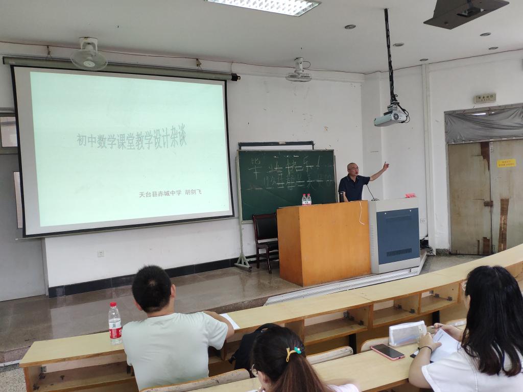 7月6日上午,VSport体育诚邀天台赤城中学胡剑飞老师作 “初中数学课堂教学设计杂谈”专题讲座,拉开了“一践行三学会”系列名师讲座活动的序幕,此活动旨在提升数学师范生专业水平和教学技能,增加当人民教师的光荣感和责任感。VSport体育部分教师,数学与应用数学(师范)专业17级员工聆听了此次讲座。