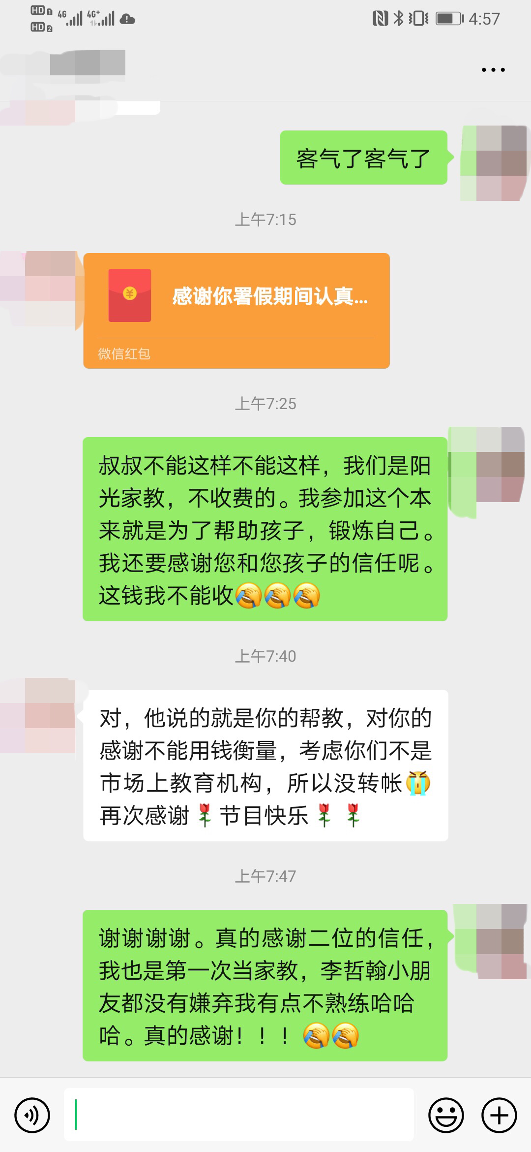 昨日是教师节,VSport体育学工办接待了特殊的家长来电,为我们“阳光家教”点赞,要求公司表扬参与公益家教的员工志愿者们。