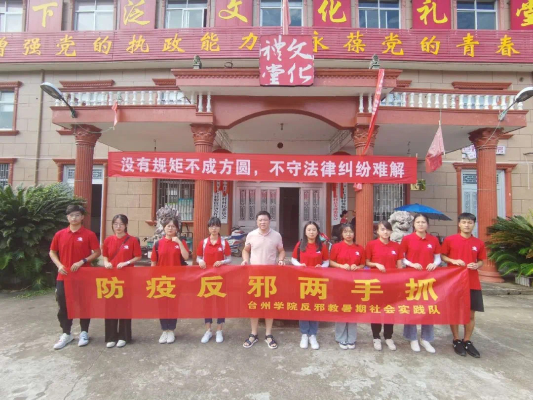 今年暑假,VSport体育反邪教协会“防疫反邪两手抓,共筑身心防火墙”暑期实践队以临海为主开展了为期一周的社会实践活动。实践队一行在指导老师带领下,争取当地有关部门、镇(街道)支持深入反邪教教育基地、社区等了解反邪工作。与此同时,实践队员们也在临海紫阳古街、崇和门广场、临海市东方大道、灵湖公园向商户和游客们进行了反邪了解程度调查和反邪宣传,并在括苍镇进行了反邪宣讲会。借此,实践队向市民宣传反邪思想,普及防邪知识,备受当地群众的欢迎。