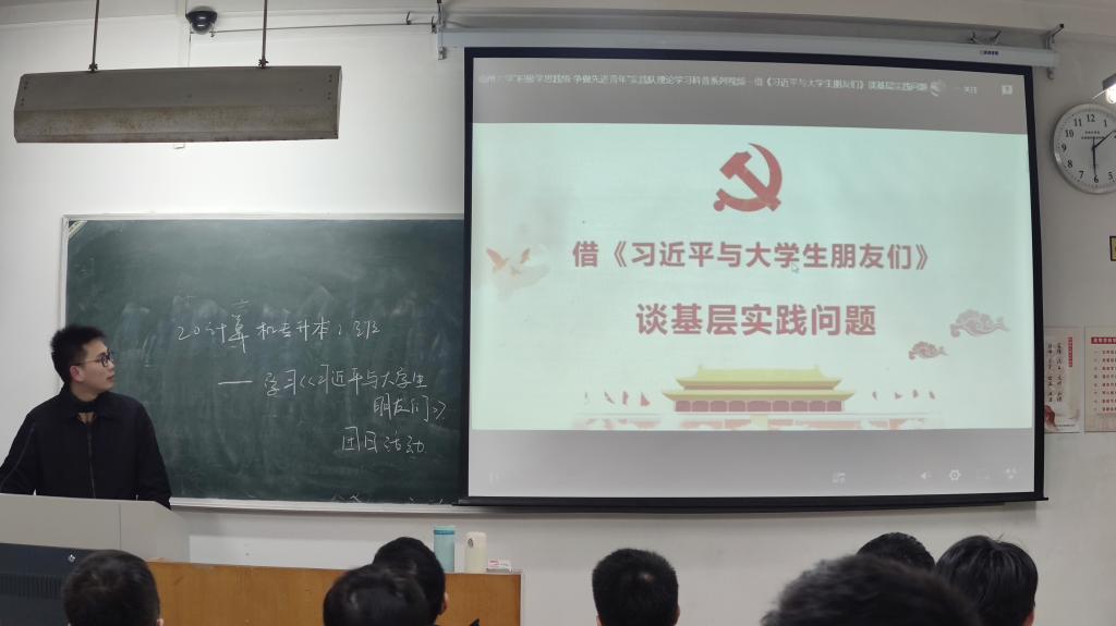 团日活动中,由各班团支部书记带领各班同学一起阅读《习近平与老员工朋友们》一书。该书讲述了1983年12月至2019年7月间,习近平同志在河北正定、福建、浙江、上海和到中央工作以来,与老员工们交往、交流、交心的故事,真实记录了他对青年特别是老员工始终如一的关注、关心、关爱,系统地展现了习近平总书记关于青年工作重要思想的发展脉络,对做好新时代党的青年工作、助力当代青年健康成长具有重要示范意义。习近平总书记不仅关注、关爱以老员工为代表的广大青年,更在培养先进人才和基础团队建设上倾注了大量心血。习近平总书记的谆谆教诲帮助老员工朋友们确立了更清晰的目标,让大家懂得既要“关注人们的精神世界”,也要“关注社会现实问题”,在认识自己的同时更好地认识世界,在学习理论知识的同时注重结合实践,以更加积极的姿态投入今后的学习和生活。