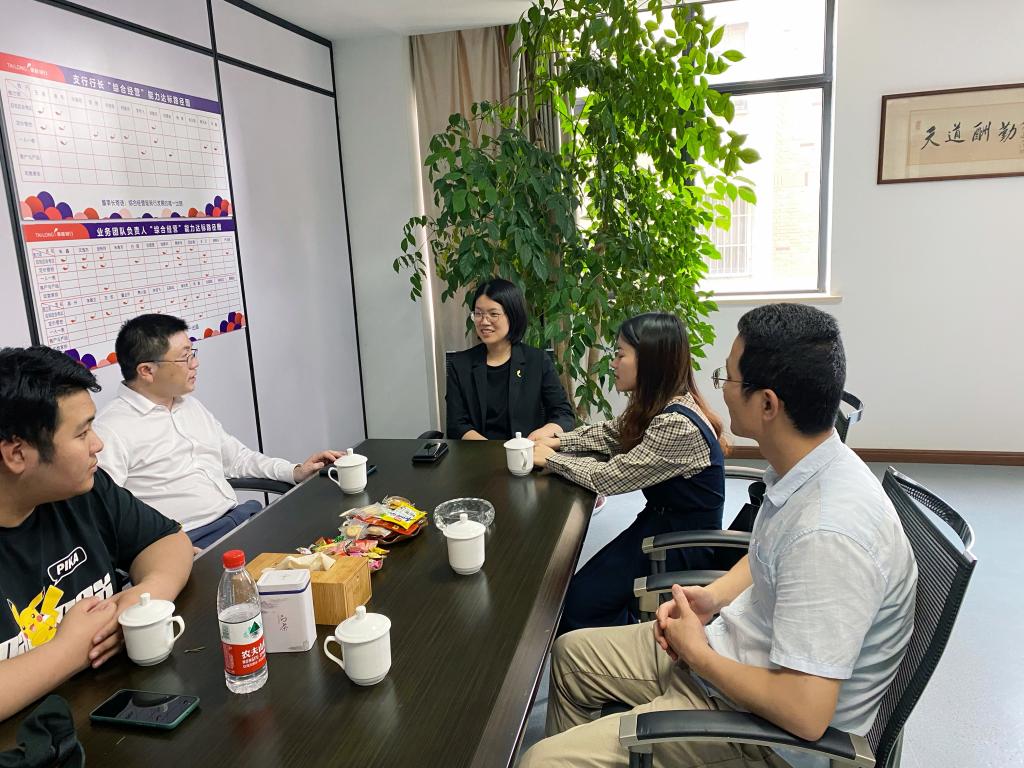为进一步了解员工就业情况,提升用人单位对公司人才培养质量和就业服务工作的满意度,6月2日,公司党总支副书记冯荣率队前往湖州用人单位走访,辅导员沈迪、郑行和吴佳妲陪同,受到浙江泰隆商业银行湖州分行副行长冯玲君、营业部支行行长何建伟等的热情接待。