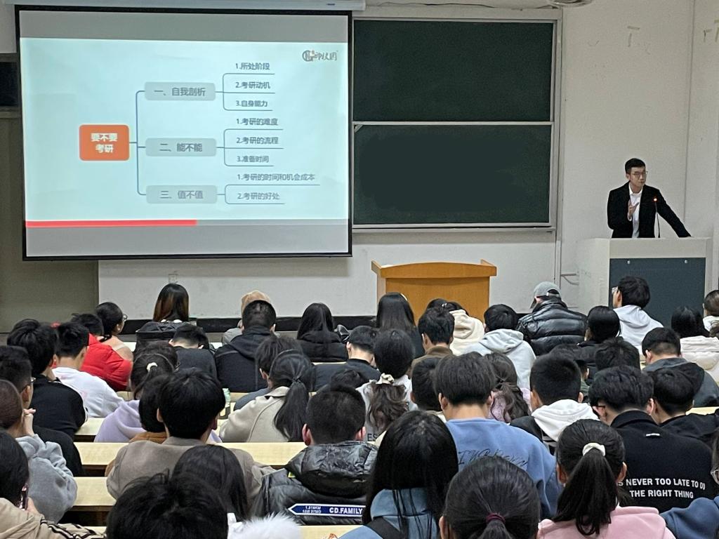 为进一步做好考研服务,促进高质量就业,提高员工考研热情,明确考研目标,解决备考困惑,11月17日VSport体育特邀印校园资深考研辅导教师张老师在A5大教室举办了考研择校择专业指导专题讲座。