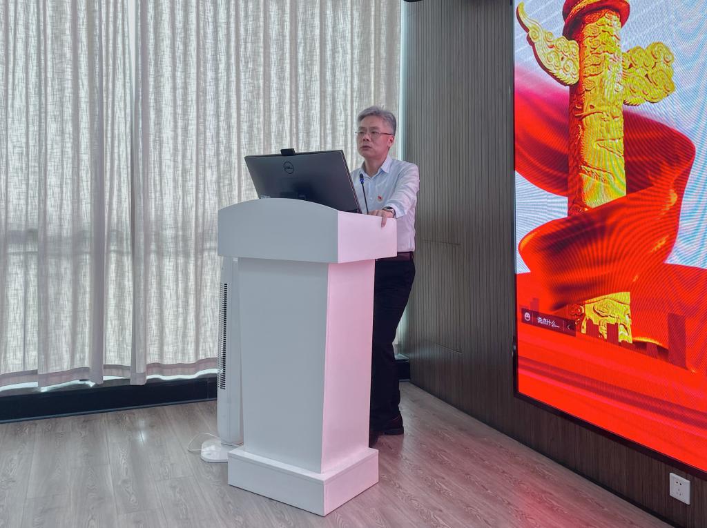 杨健国首先讲述了党的十九届六中全会审议通过的《决议》的重大意义和重要作用,并结合十九届六中全会的精髓要义,以一组数字“12345101020”的形式,从具有内在逻辑关系的七个重要方面的角度对十九届六中全会的科学内涵进行了具体的分析。杨健国指出,在中国共产党成立一百年的重要历史时刻,在“两个一百年”奋斗目标历史交会关键节点,再一次审议通过新的历史决议,对推动全党统一思想、统一意志、统一行动,团结带领全国各族人民在新时代坚持和发展中国特色社会主义、实现中华民族伟大复兴,产生重大而深远的意义。最后,杨健国希望大家能深入学习贯彻党的十九届六中全会精神,深刻领会“两个确立”的决定性意义,以实际行动迎接党的二十大胜利召开。