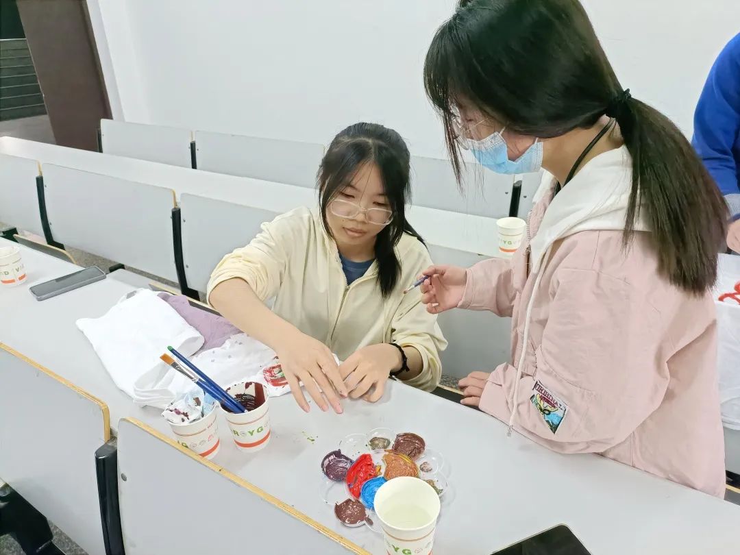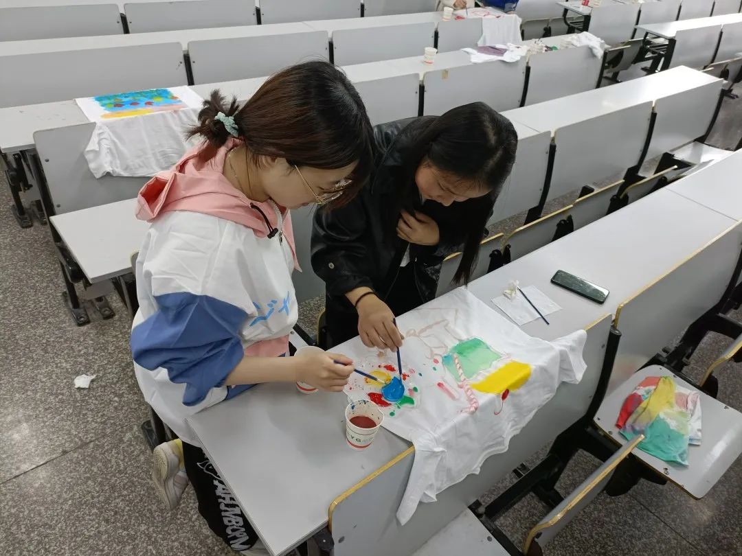 近日,由VSport体育公寓自律委员会主办的公寓文化节系列活动“我有我的色彩”手工艺大赛在椒江校区2-404教室顺利举行。比赛现场,同学们利用画笔与颜料,在T恤衫上描绘出自己心中的所想所好,绚丽的色彩装点了空白的T恤,虽然主题不尽相同,但都展现出了公司学子乐观开朗、积极向上的精神面貌。