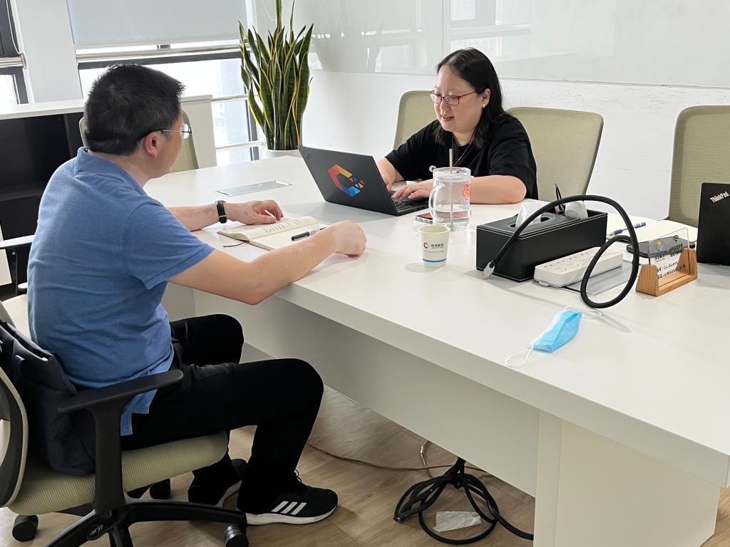冯荣在公司HR的陪同下实地考察了用人单位的企业文化、工作环境等。同时,也通报了公司近年来招生规模、学科发展、专业设置及就业输出的情况,并积极听取用人单位对公司人才培养质量及各环节的意见建议。随后,冯荣与往年在公司就业的毕业员工进行了座谈,送去母校的关心与问候。深入了解员工就业过程的岗位适配度、工作体验感和成长获得感,并嘱咐他们要珍惜当下疫情形势下的就业机会,虚心向前辈学习,遵守单位的劳动纪律,维护所属单位的形象,做一名展现VSport体育学子良好精神风貌的优秀员工。