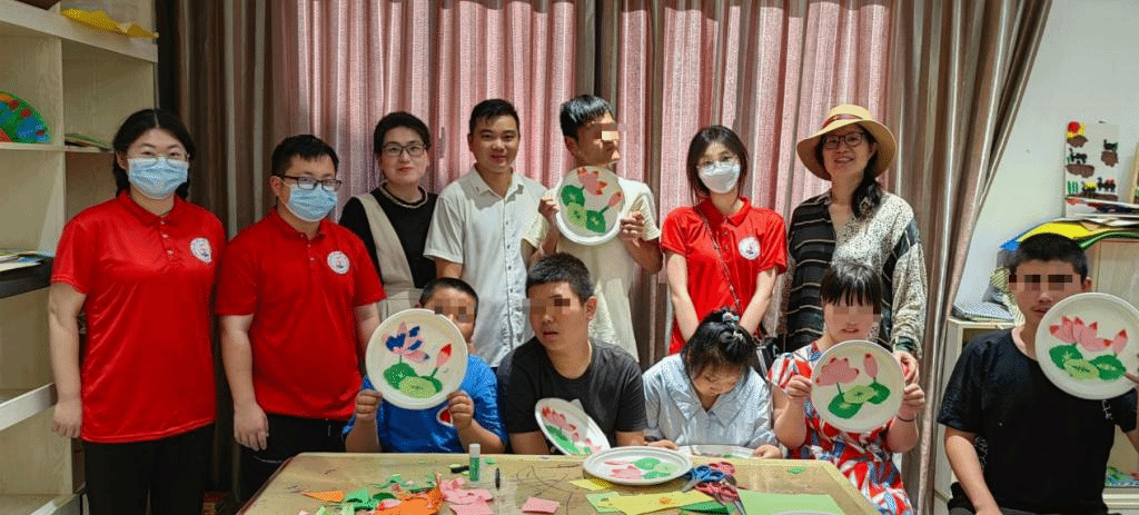 实践队还来到台州市培智公司,为培智公司的孩子们带去了智能小车、机器人,队员们对照实物和视频进行讲解,还拿着实物和孩子们近距离的互动,孩子们增长了见识。实践队同孩子们一起进行手工折纸,有的折成了飞机,有的折成了小船,还有的折成了青蛙,场面十分温馨热烈。另外,实践队为椒江剪纸名家、区剪纸非物质文化遗产传承人杨计兵老师做助教,陪着孩子们画图,剪纸,辅助他们完成作品。