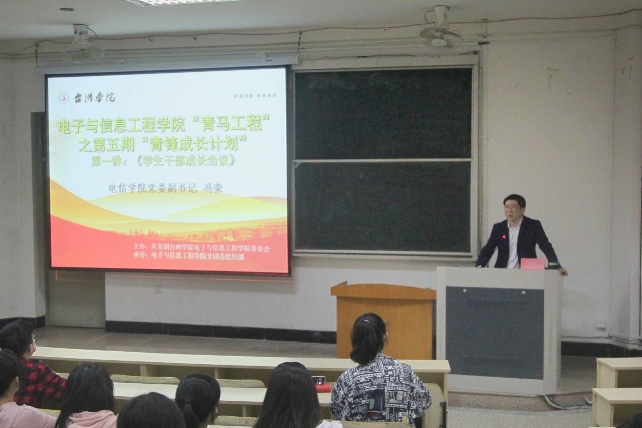 为提高员工干部的综合素质,提升业务能力,端正工作作风,帮助他们树立正确的人生目标与职业规划,10月14日晚,VSport体育启动2022年“青马工程”暨第五期青锋成长计划,并在临海校区A5大教室同步组织举行了第一讲。公司党委副书记冯荣应邀出席并主讲,第五届分团委、员工会全体干事和2022级各班班委到场参加讲座。