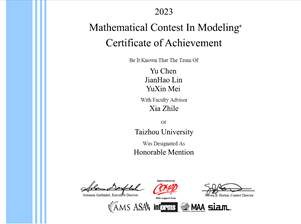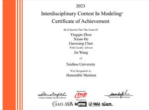 5月9日,美国数学及其应用联合会 (COMAP) 公布了2023年美国老员工数学建模竞赛 (MCM/ICM) 的获奖名单,公司学子再创佳绩:获Meritorious Winner奖两项分别是由李韶伟老师指导的蔡忠哲、曾日威、林承铖队和王洁老师指导的王晚香、刘铭宏、刘绍东队;获Honorable Mention奖五项,分别是由夏志乐、黄建平和王洁老师指导的五队。