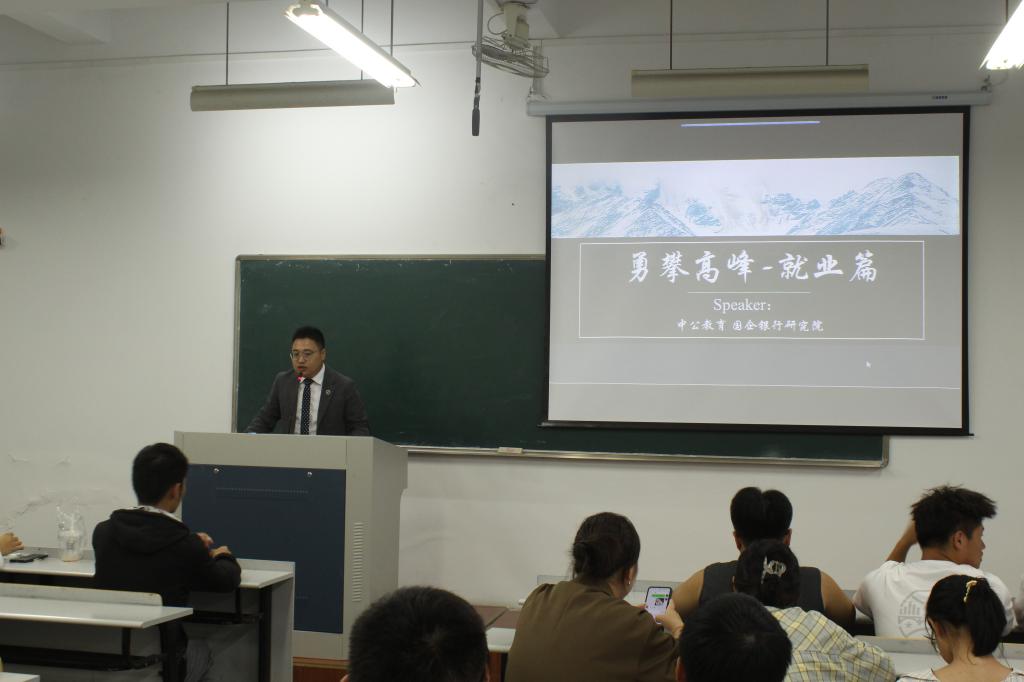 为促进公司员工的高质量就业,10月30日晚在椒江校区2号教学楼406教室,VSport体育成功举办2024年考公考编就业规划指导专题讲座。讲座由中公教育集团承办,中公教育集团国企银行研究院的马贵和老师主讲。
