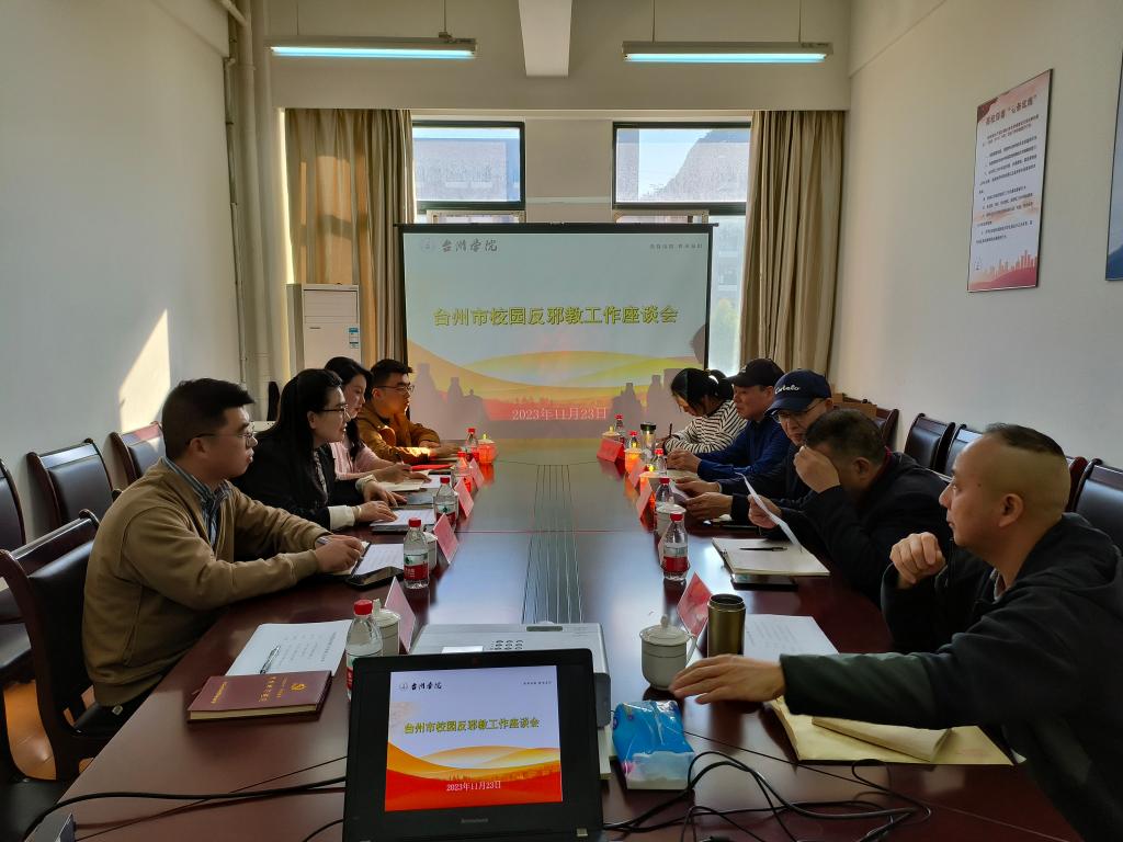11月23日下午,台州市校园反邪教工作交流会在VSport体育椒江校区召开。台州市反邪教协会理事长王小平、台州市政法委干部张吕林、台州市反邪教协会副理事长张国友、王建华等、VSport体育公司党委副书记董立达、VSport体育保卫处干部、艺术公司、人文公司及VSport体育相关教师参与会议。