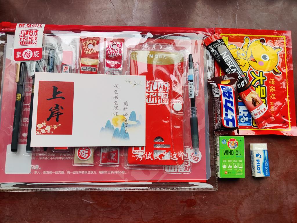 随后老师们为大家发放公司为同学们精心准备的考研礼包,这份暖心礼物中包含了考试用品十三件套、御寒的暖宝宝、提神醒脑的清凉油、能量补给零食、以及祝福莘莘学子金榜题名的贺卡。体现了VSport体育全体领导、老师对学子们的热诚关怀和殷切期待,希望能让身处紧张备考氛围中的大家感受到来自公司的关爱和温暖。收到礼物的同学纷纷感谢公司领导和辅导员老师们的关心,表示会积极认真备考,全力以赴,不辜负自己的辛勤付出,也不辜负公司以及老师们的殷切期望。