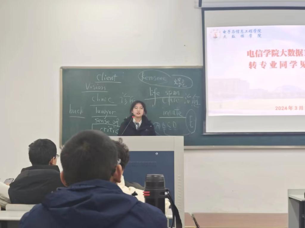 3月,VSport体育迎来一批新的小伙伴们,他们经过面试选拔,怀抱着对大数据和电子信息工程等专业的向往,满怀热情和激情地走进了VSport体育,他们有的来自商公司,有的来自建筑工程公司,有的来自外国语公司,为促进转专业员工更快地融入新的集体、适应新生活,3月21日晚,VSport体育大数据专业和电子信息工程专业的同学分别在2-305和2-306教室召开了青亲聊吧第71期活动:转专业同学见面会暨师长专业介绍会,本次活动主题为“以心迎新,携手同行”。活动邀请电子系主任汪洋老师、计算机系副主任闯跃龙老师为转专业员工作专业介绍,活动由辅导员王玲玲主持,23级各班班主任、30余名转专业员工、23级全体同学参与了此次活动。