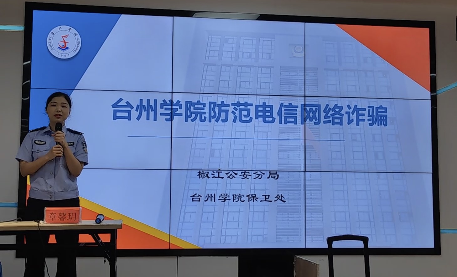 章警官进行防范电信诈骗专题讲解,通过介绍几种典型的电信网络诈骗的流程,加深同学们对诈骗案例的了解;同时结合真实案例,通过深刻解剖,揭露员工在实习、求职、就业过程中容易遇到的网络诈骗的作案手法及技巧,切实提高同学们防范电信网络诈骗意识。