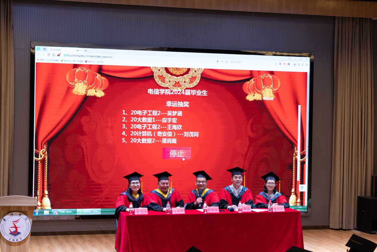 典礼尾声,公司经理抽取幸运毕业生,为毕业生颁发幸运奖品。
