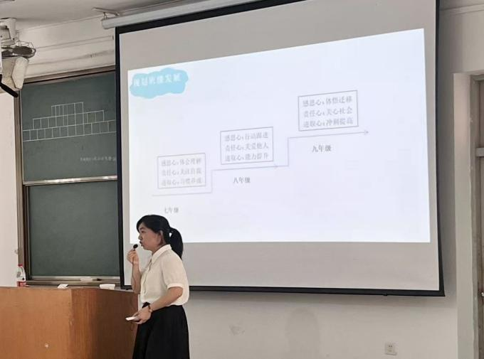 在讲座初,王老师谈到班级发展重在规划,采取分阶段渗透育人的做法,其主要依据班级员工的阶段特征。七年级员工处于自我认知形成期,故聚焦 “关注自我、悦纳自我”,通过排球达标等活动培养运动习惯与行为规范;八年级员工社交需求增强,因此围绕 “关爱他人、发展能力”,借助篮球比赛等活动提升团队合作与责任感;九年级员工社会意识觉醒,则侧重 “关心社会、追梦圆梦”,以公益晨跑等活动激发社会担当与奋斗精神。