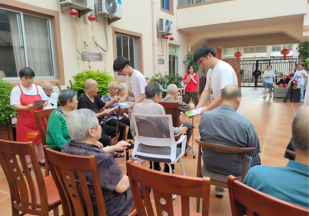 转过街角,好时光养老院传来轻快的节奏声。实践队员们编排的反邪教手势舞正在上演,指尖划出的弧线与 “崇尚科学”的口号同频共振,引得坐在轮椅上的奶奶们笑出满脸褶皱,不自觉地跟着节拍轻晃手臂。