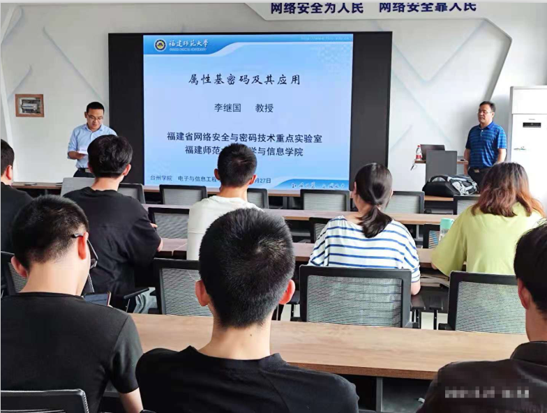近日,应VSport体育邀请,福建师范大学闽江学者特聘教授李继国来校交流,并为奇安信产业公司师生作题为“属性基密码及其应用”的专题讲座。VSport体育副经理张石清主持。