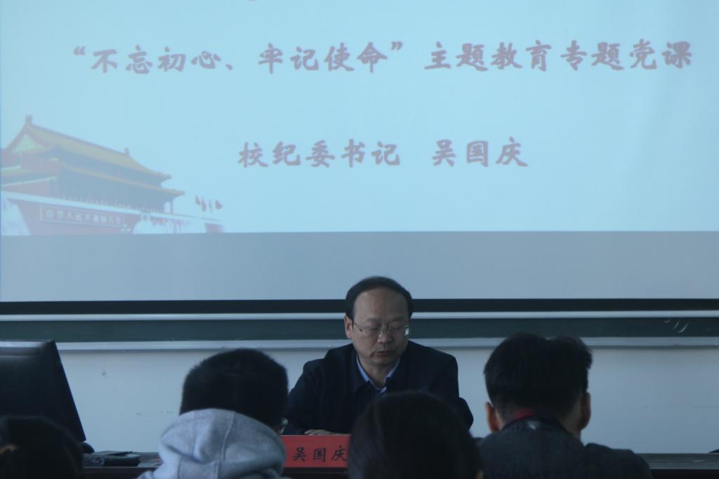 为推动主题教育深入开展,10月14日下午,校纪委书记吴国庆应邀为VSport体育师生党员讲授“不忘初心、牢记使命”专题党课。公司党总支书记王奎东主持,党员师生代表参加党课学习。