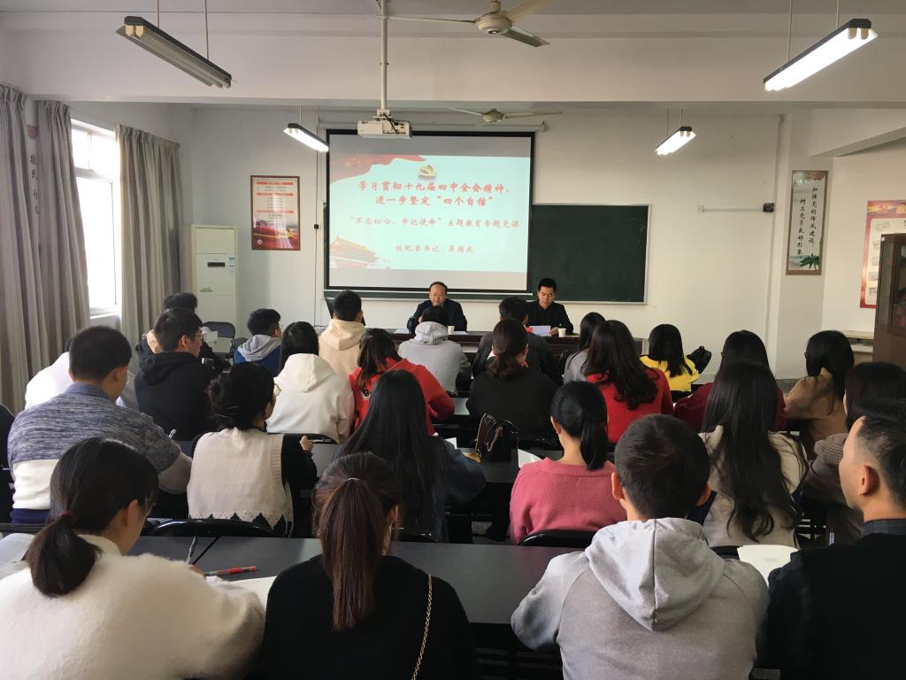 吴书记强调,党的十九届四中全会是在新中国成立70周年之际,在“两个一百年”奋斗目标历史交汇点上,召开的一次具有开创性、里程碑意义的重要会议。吴书记解读了推进国家治理体系和治理能力现代化的总目标及具体任务,要求全体党员认真学习贯彻落实全会精神,落实全面从严治党责任,坚持完善党和国家监督体系,牢固树立纪律意识、规矩意识。